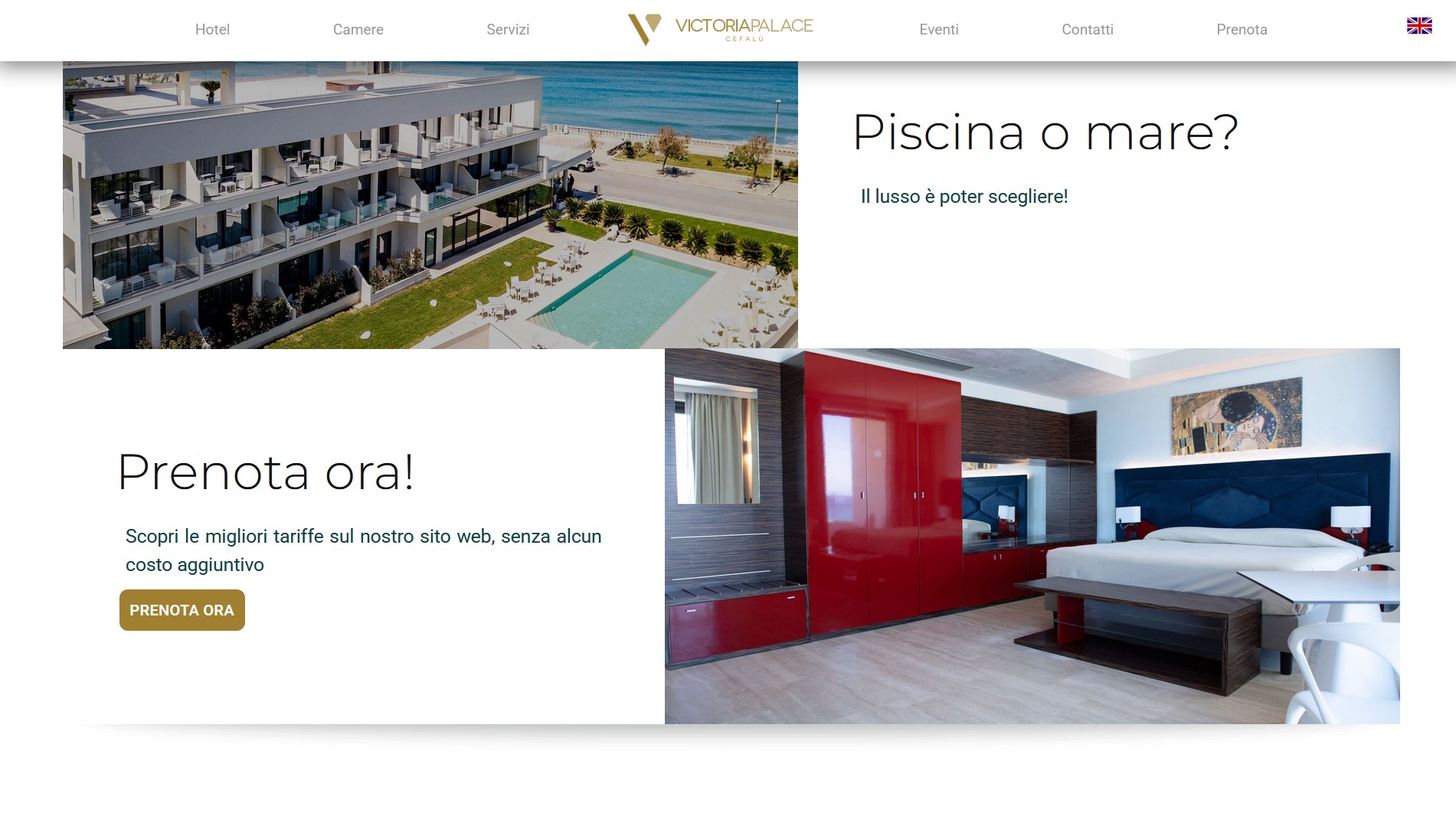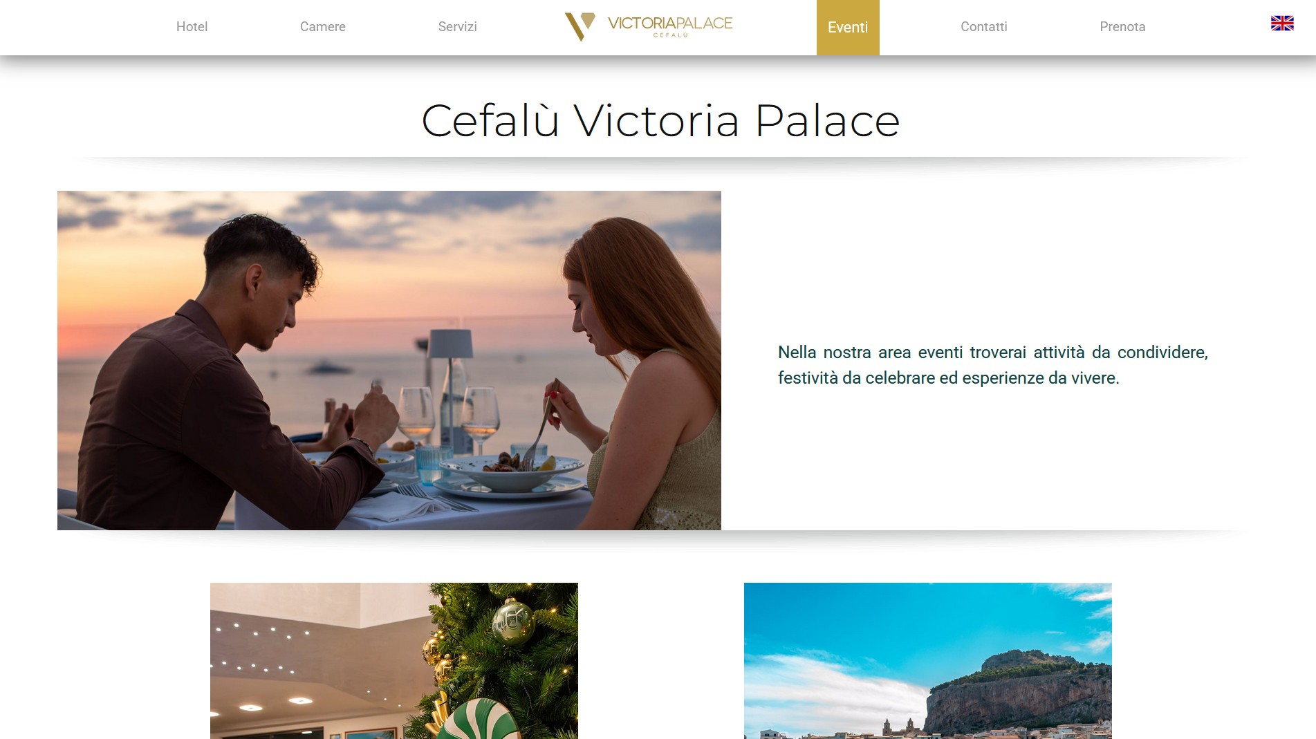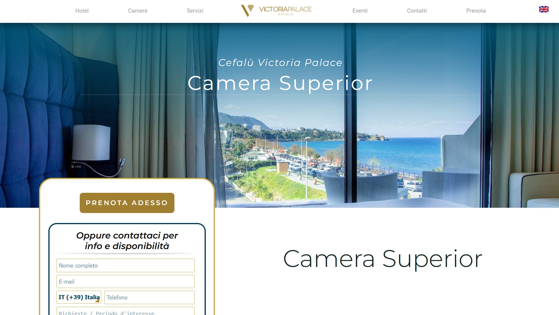 Il sito victoriapalacecefalu.it si presenta con un design elegante e moderno, immagini di alta qualità e una navigazione intuitiva che facilita la prenotazione online. I contenuti sono chiari e completi, evidenziando i punti di forza dell’hotel come posizione fronte mare, spiaggia privata, piscina e ristorante panoramico. È ottimizzato per dispositivi mobili e mostra una buona reputazione online, offre un’esperienza utente fluida e professionale.